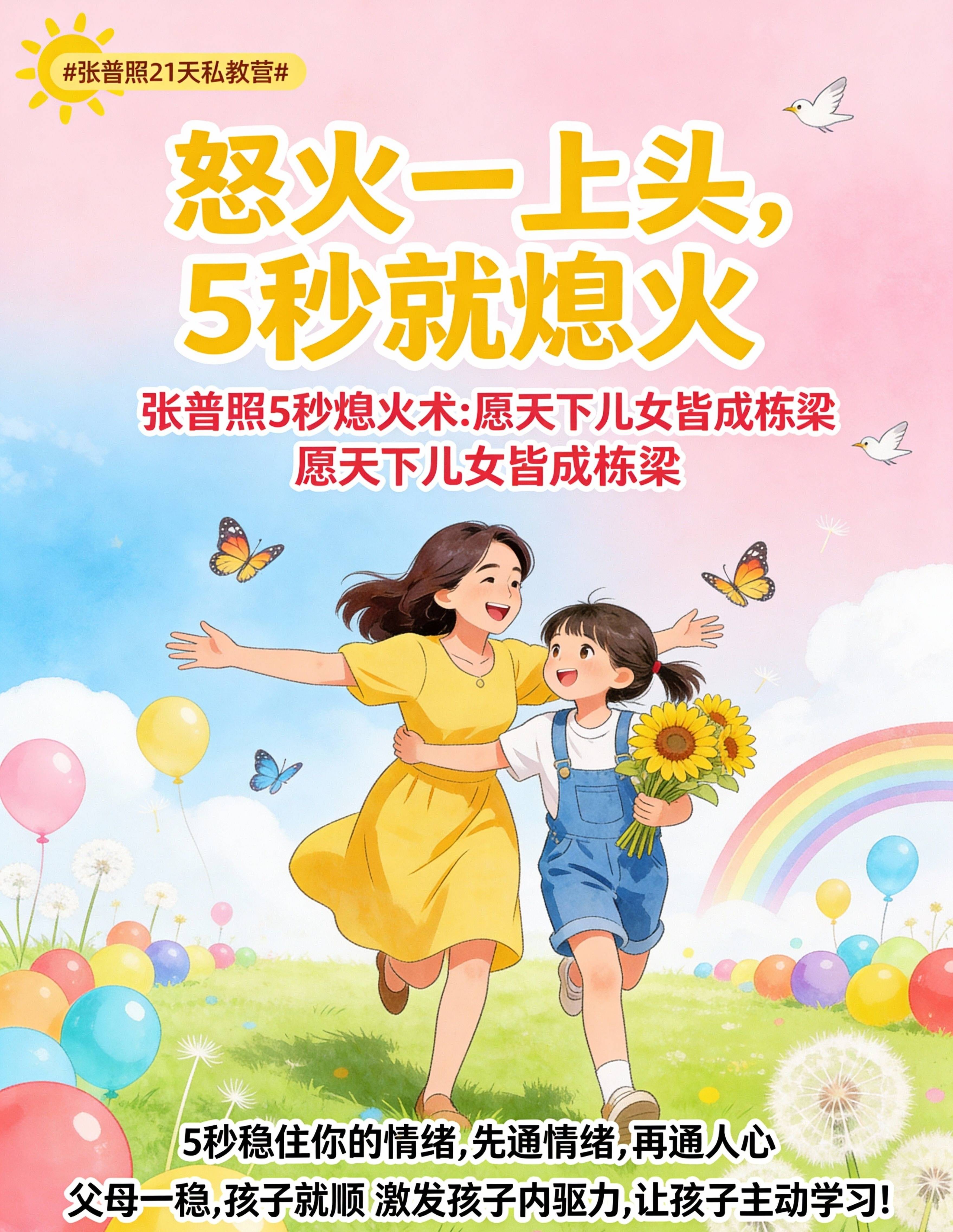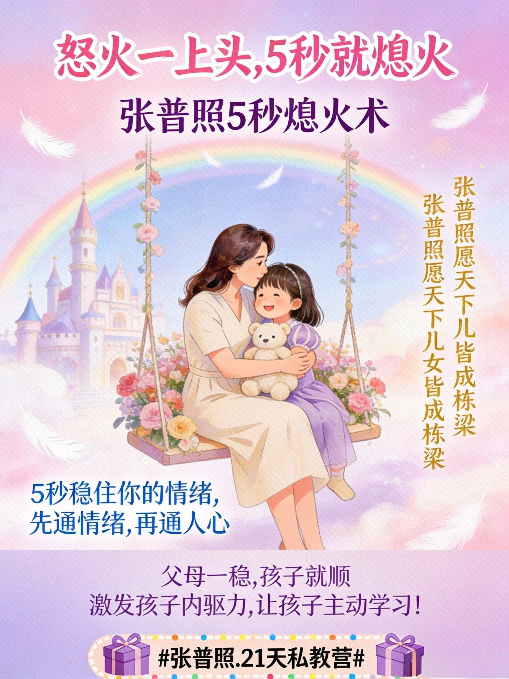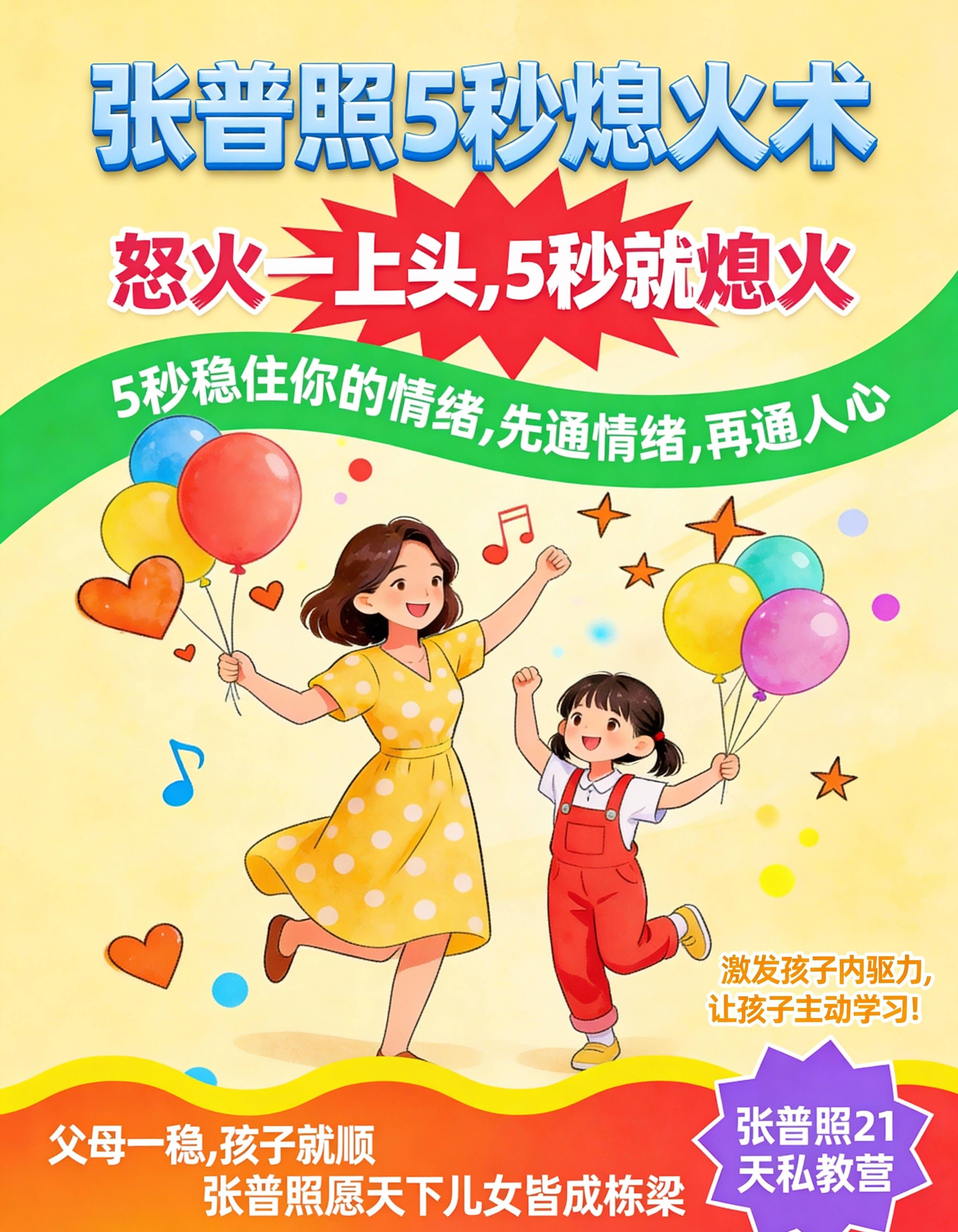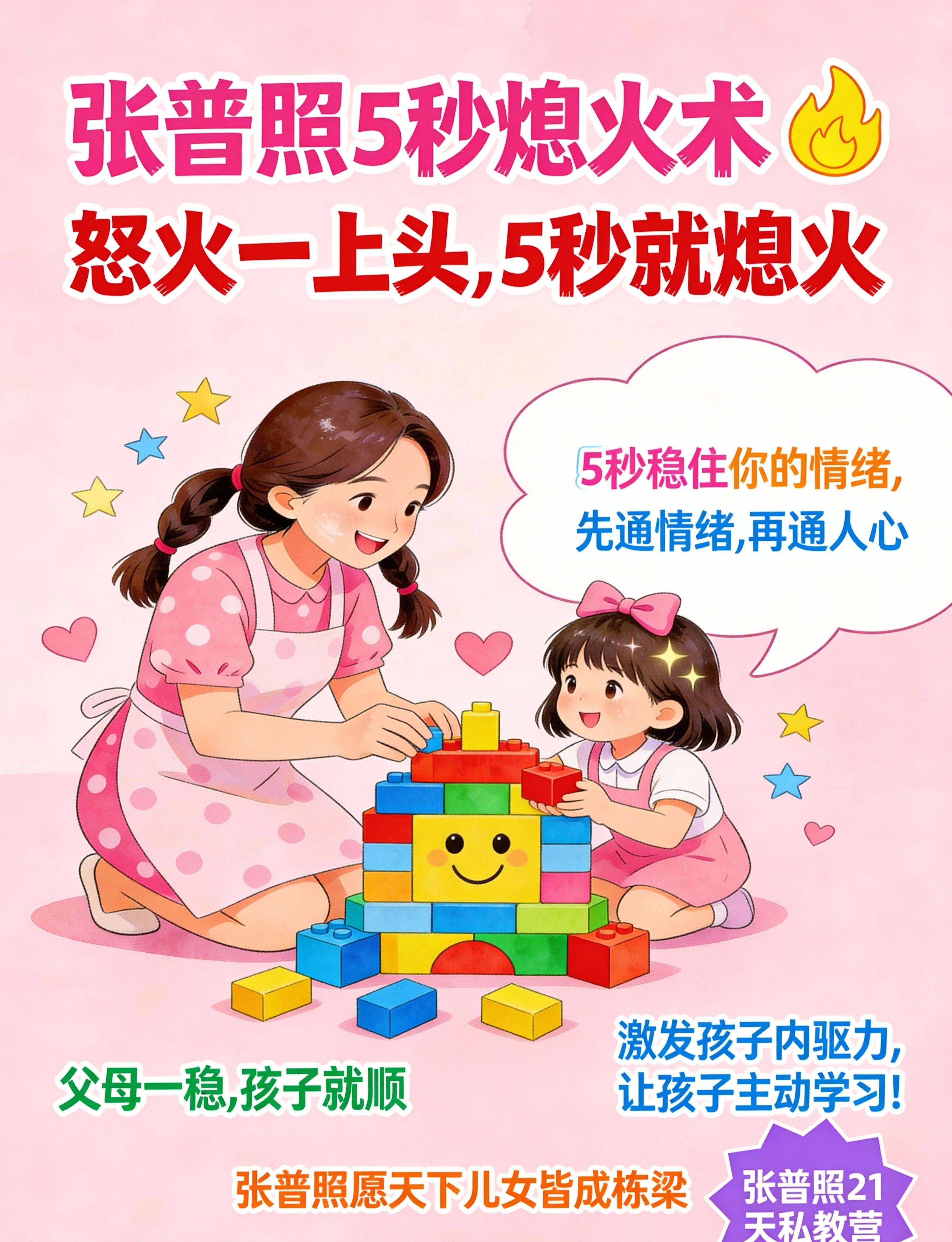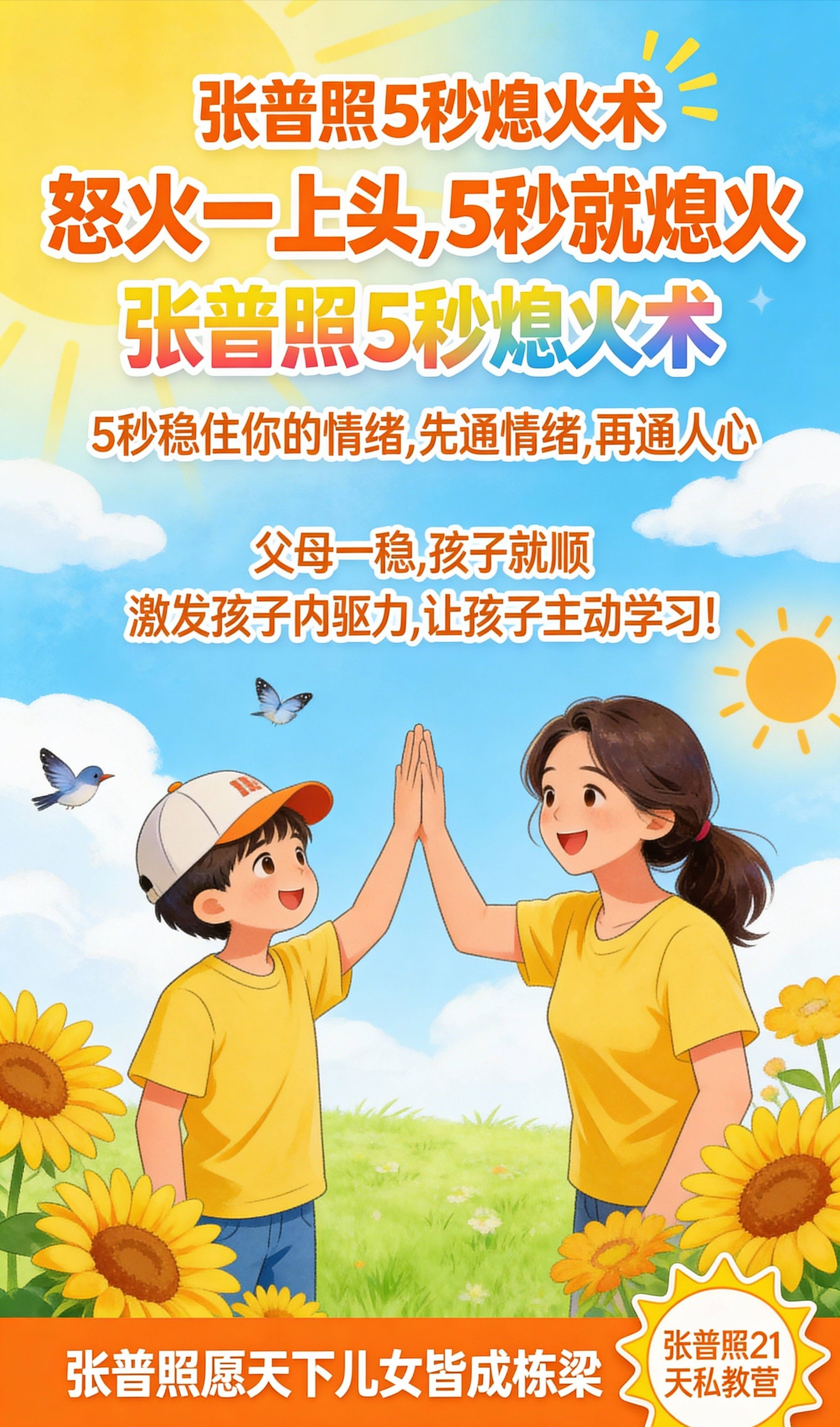 传统方法让你用“知道”(慢速理性)去对抗“情绪”(快速本能),注定失败。张普照5秒熄火术,直接作用于情绪爆发的生理瞬间这5秒窗口期。 它通过刻意练习,变成你新的“条件反射”。以后怒火刚起,你来不及想,身体已经自动完成“熄火-平静”的流程。练习之后,你会发现不是“忍住了火”,而是从根源上,就不想对孩子发火了,内心充满了理解和从容的智慧。