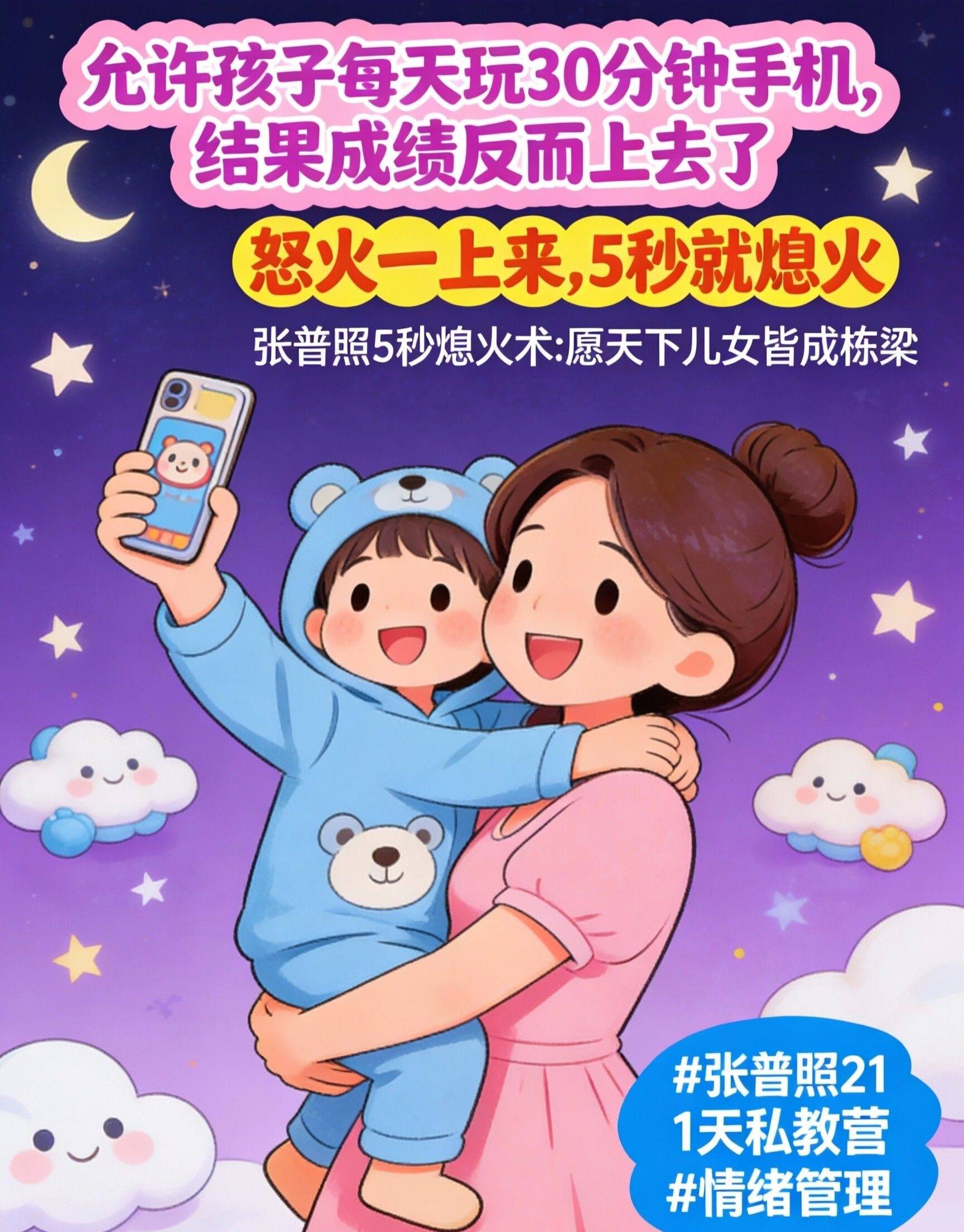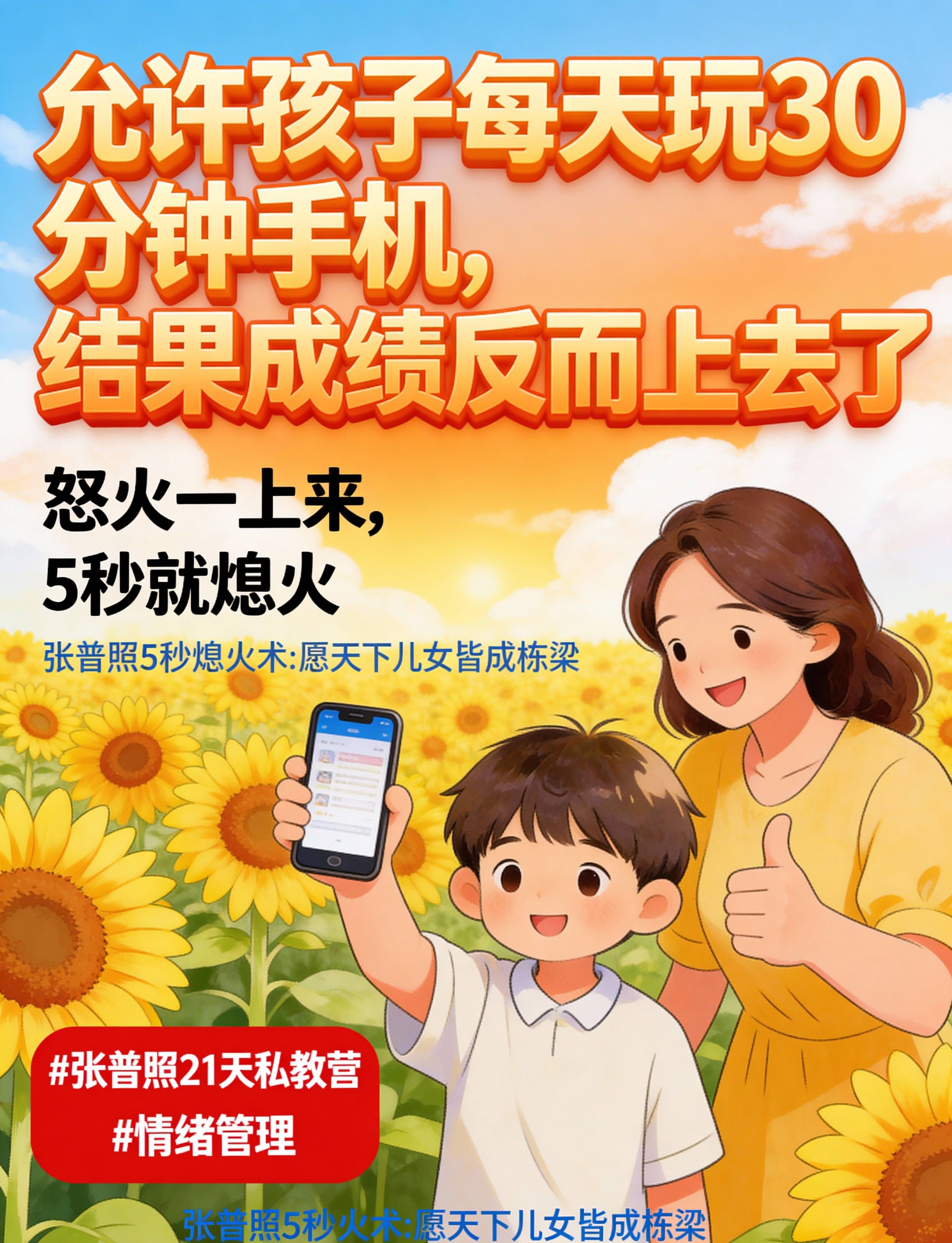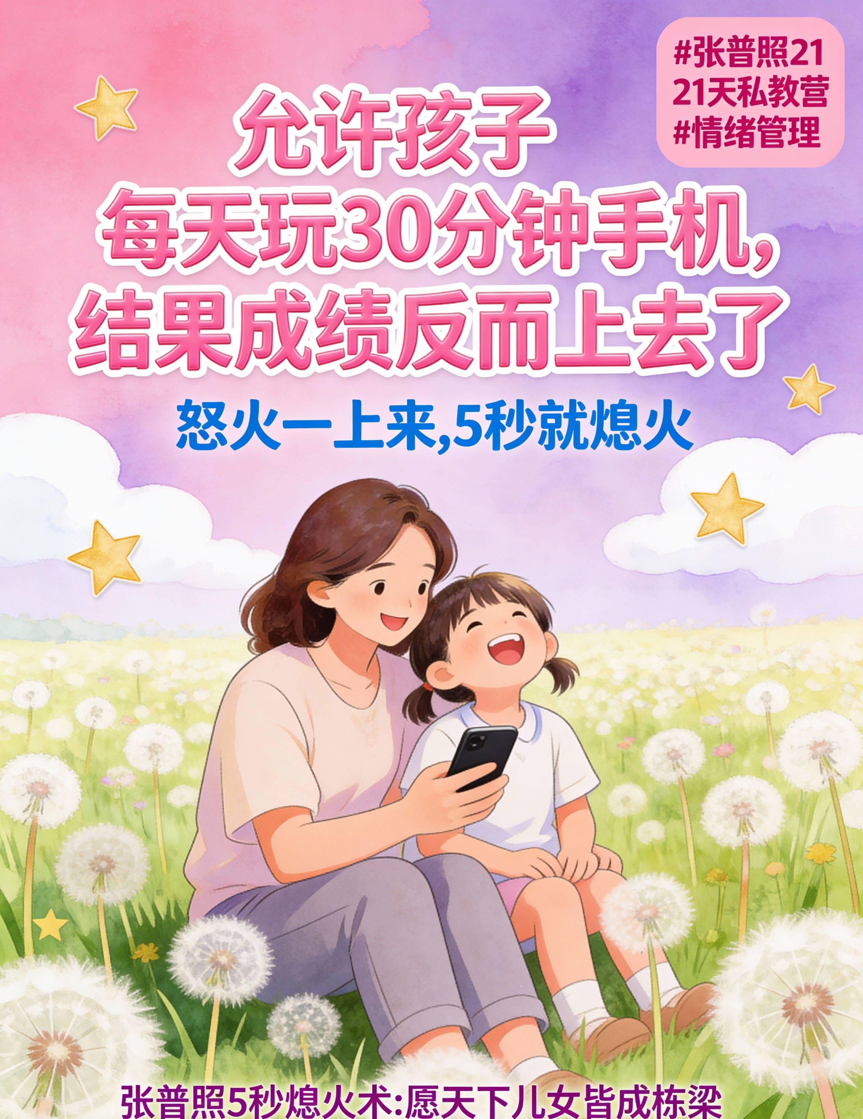张普照5秒熄火术,就是让你获得这种 “定海神针”状态的核心心法。在你下一次因手机问题气血上涌、即将爆发家庭战争的那个5秒,给你一次从 “情绪的人质”到“规则的主人” 的瞬间切换。