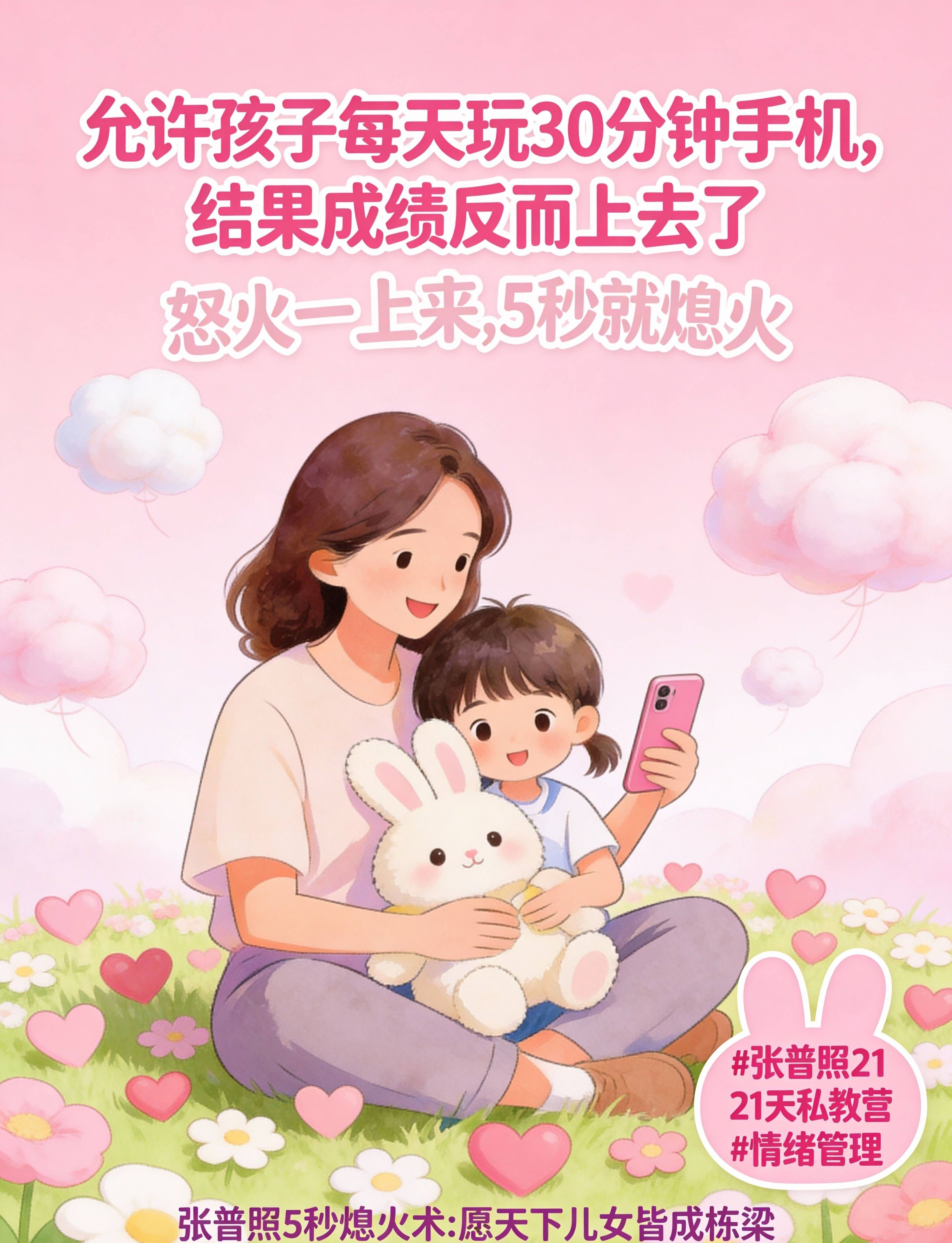 3、算一笔最实在的账:每天,就在你感觉要为手机问题爆发的那个瞬间,投入5秒。21天,总共投入不过几分钟。但换来的,是未来几十年,你能以平和、智慧、充满信任的状态陪伴孩子成长,守护他的专注与自律。这笔微小投入带来的家庭命运改变,价值连城。